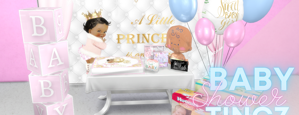 My sims ALWAYS have baby showers, but I felt like I was just peicing things together, and the baby shower never really turned out the way I wanted to ! So, I created this set for all my simmers out there who want to celebrate their new buns in the oven! This set includes Baby shower backdrops, Sheet cakes, Decorative Baby blocks, diapers, balloons and SO MUCH MORE! I made tons of swatches for baby girls AND boys! So- Enjoy! AND don't forget to tag ME!!